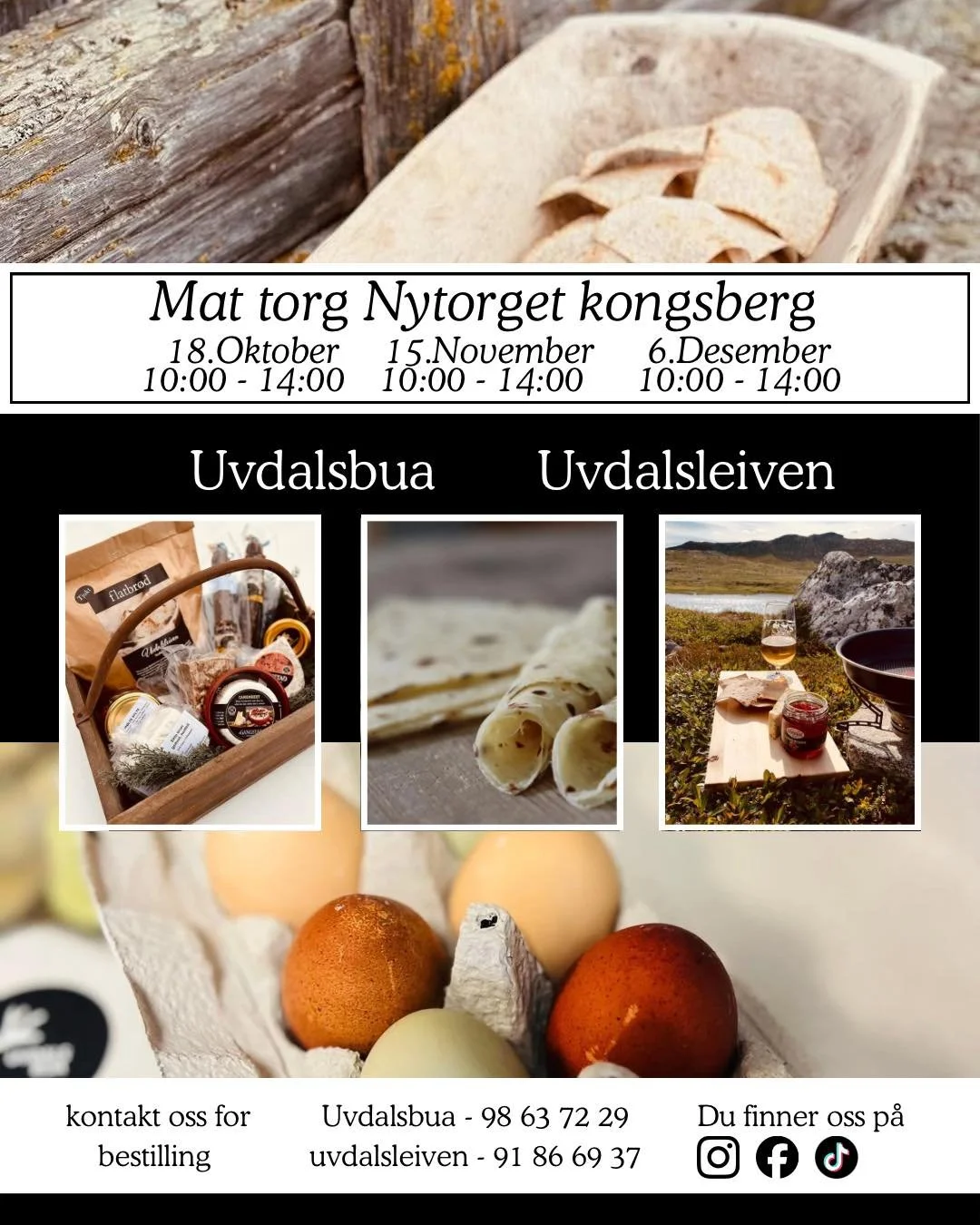 Uvdalsleiven Tradisjonsbakst og Uvdalsbua pakker med seg masse godt som bla. spekemat, flattbrød, kling, oster, geleèr, syltetøy mm. Husk å bestille kling til jul fra Uvdalsleiven i god tid. Du finner dem som vanlig på Nytorget kl. 10-14.